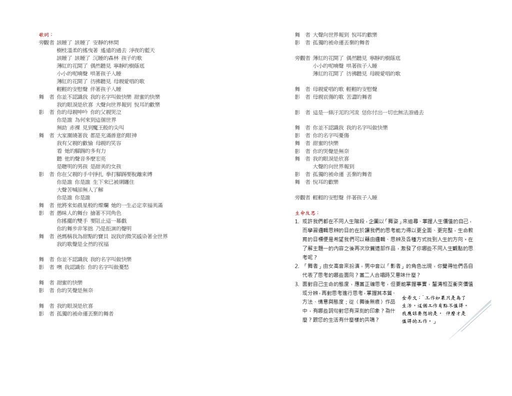 生命音樂廳(哲學思考)舞後無痕 分類:丁國翔2020-03-122020-10-03發表於關於教育標籤:生命教育 作曲:金希文 分享此文: 按一下即可分享至 X(在新視窗中開啟) X 按一下以分享至 Facebook(在新視窗中開啟) Facebook 喜歡 正在載入... 相關 發表者:丁國翔 【以有限的能力,創造無限的可能】 致力於生命教育、音樂教育 榮獲新北市教育局生命教育New Life教師獎、 實踐大學優良品德獎。 國立新竹教育大學藝術學(音樂教育)碩士 國立臺灣大學生命教育中心結業 檢視更多文章