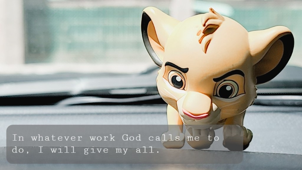 In whatever work God calls me to do, I will give my all.