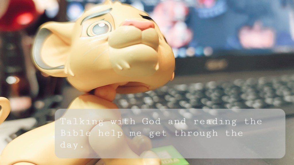 Talking with God and reading the Bible help me get through the day.