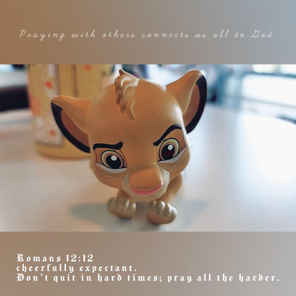 Romans 12:12 cheerfully expectant. Don’t quit in hard times; pray all the harder.