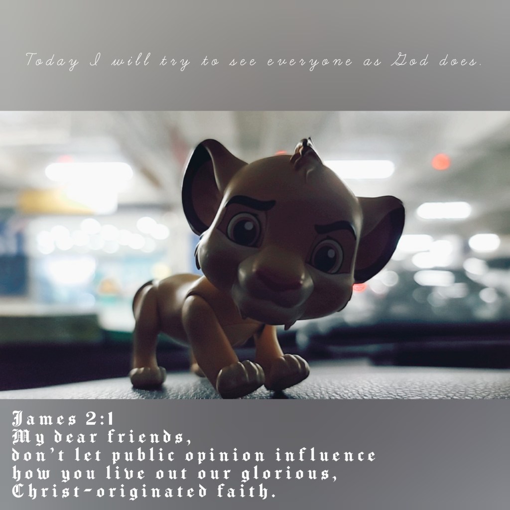 James 2:1 My dear friends, don’t let public opinion influence how you live out our glorious, Christ-originated faith.