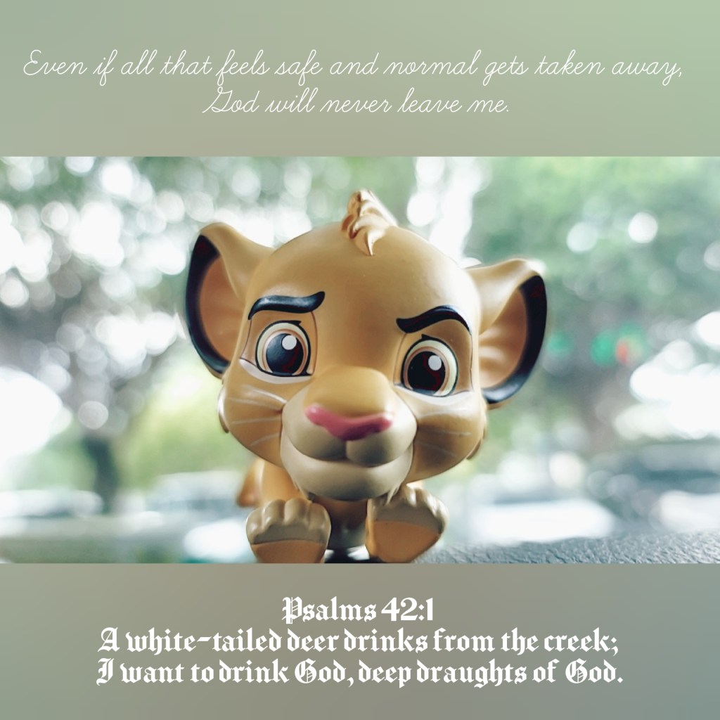 Even if all that feels safe and normal gets taken away, God will never leave me.