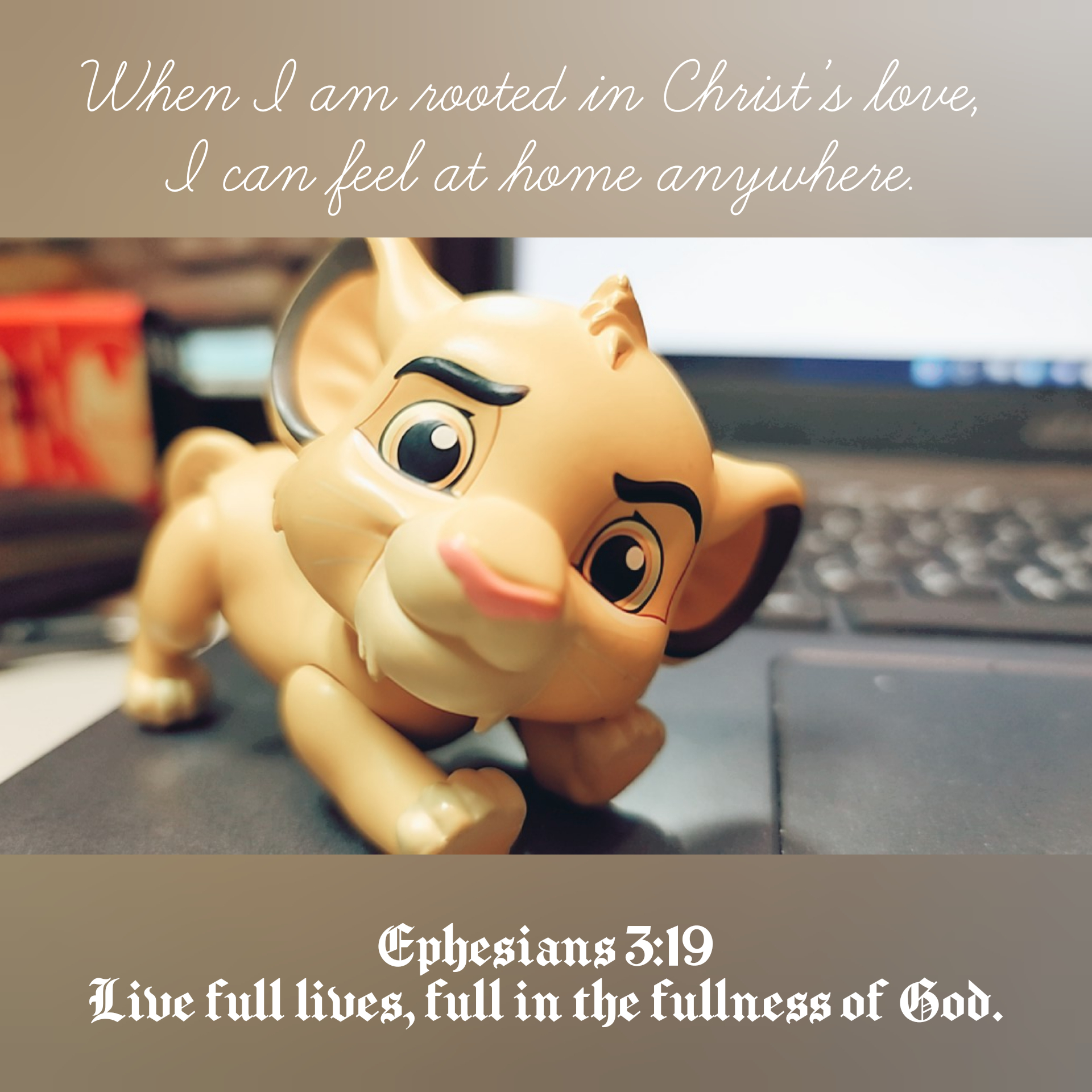 Rooted in Love 分類:丁國翔2021-12-212021-12-22發表於關於生活標籤:靈修札記,迪士尼看信仰 扎根在神的愛中 Ephesians 3:19Live full lives, full in the fullness of God. When I am rooted in Christ’s love, I can feel at home anywhere. See in everyone the nature of Godor Buddha and that of a human.Be the first to love and give. 分享此文: 按一下即可分享至 X(在新視窗中開啟) X 按一下以分享至 Facebook(在新視窗中開啟) Facebook 喜歡 正在載入... 相關 發表者:丁國翔 【以有限的能力,創造無限的可能】 致力於生命教育、音樂教育 榮獲新北市教育局生命教育New Life教師獎、 實踐大學優良品德獎。 國立新竹教育大學藝術學(音樂教育)碩士 國立臺灣大學生命教育中心結業 檢視更多文章