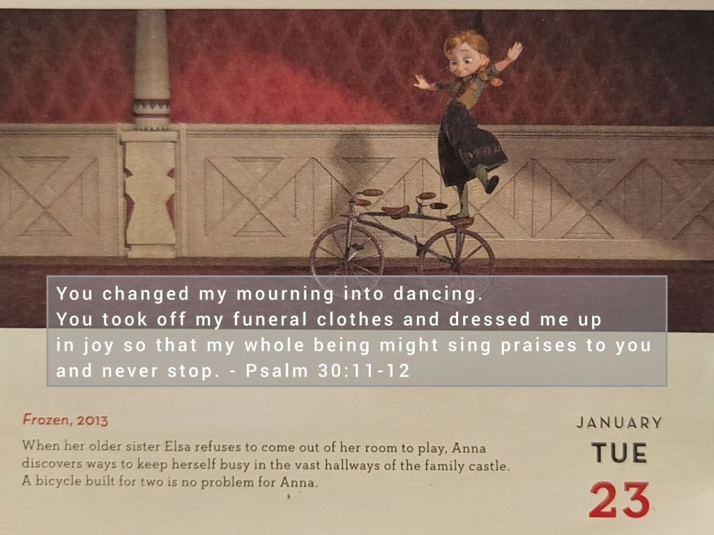 You changed my mourning into dancing. You took off my funeral clothes and dressed me up in joy so that my whole being might sing praises to you and never stop. – Psalm 30:11-12