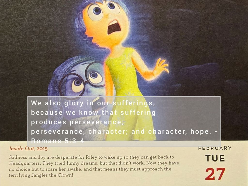 We also glory in our sufferings, because we know that suffering produces perseverance; perseverance, character; and character, hope. – Romans 5:3-4