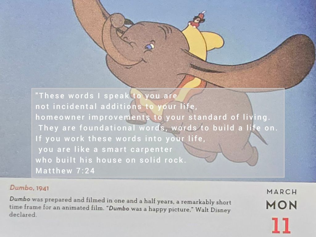 “These words I speak to you are not incidental additions to your life, homeowner improvements to your standard of living. They are foundational words, words to build a life on. If you work these words into your life, you are like a smart carpenter who built his house on solid rock.