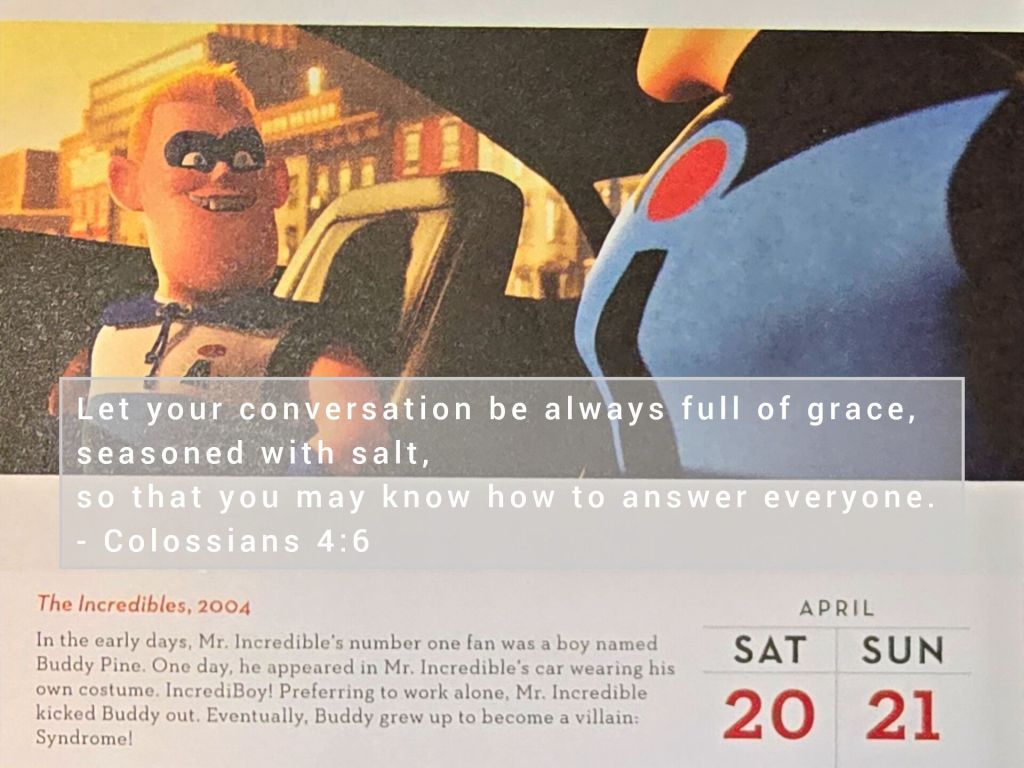 Let your conversation be always full of grace, seasoned with salt, so that you may know how to answer everyone. – Colossians 4:6