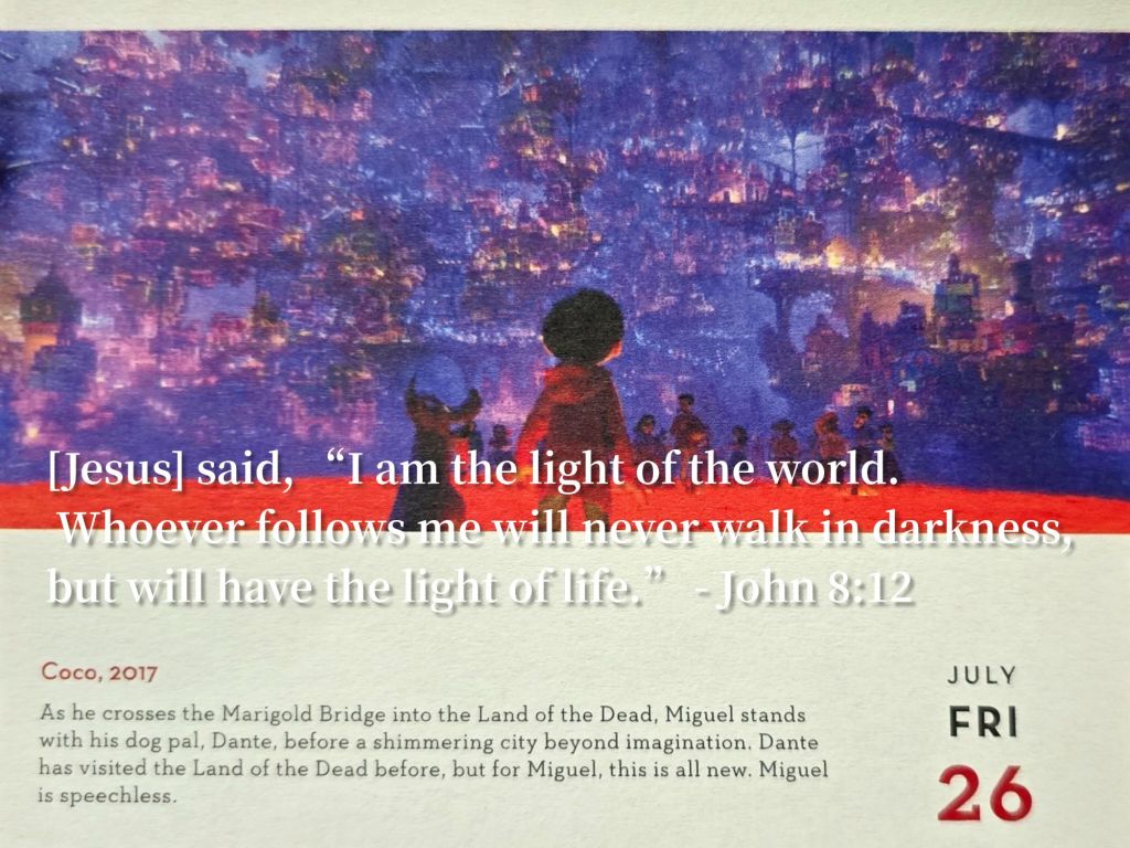 [Jesus] said, “I am the light of the world. Whoever follows me will never walk in darkness, but will have the light of life.” – John 8:12
