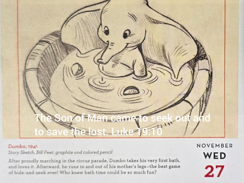 《小飛象》的素描描繪了小飛象在遊行後的第一次洗澡,這個場景象徵著一種純粹的、童真的喜樂。小飛象經歷了遊行的盛事(可以視為一種挑戰或考驗),之後享受著放鬆和愉悅的洗澡時光。這可以被理解為一種「被拯救」的隱喻,從壓力和疲憊中獲得釋放,享受簡單的快樂。我們的生命一樣可以從困境中獲得釋放,並享受到由此而來的喜悅與平和。