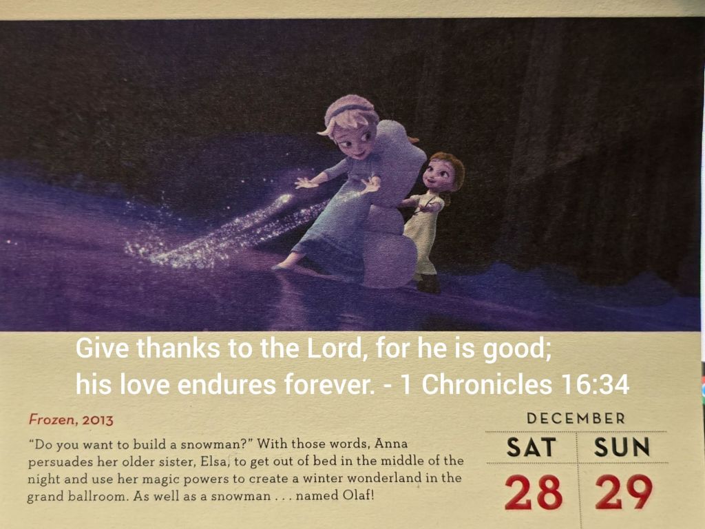 Give thanks to the Lord, for he is good; his love endures forever. – 1 Chronicles 16:34