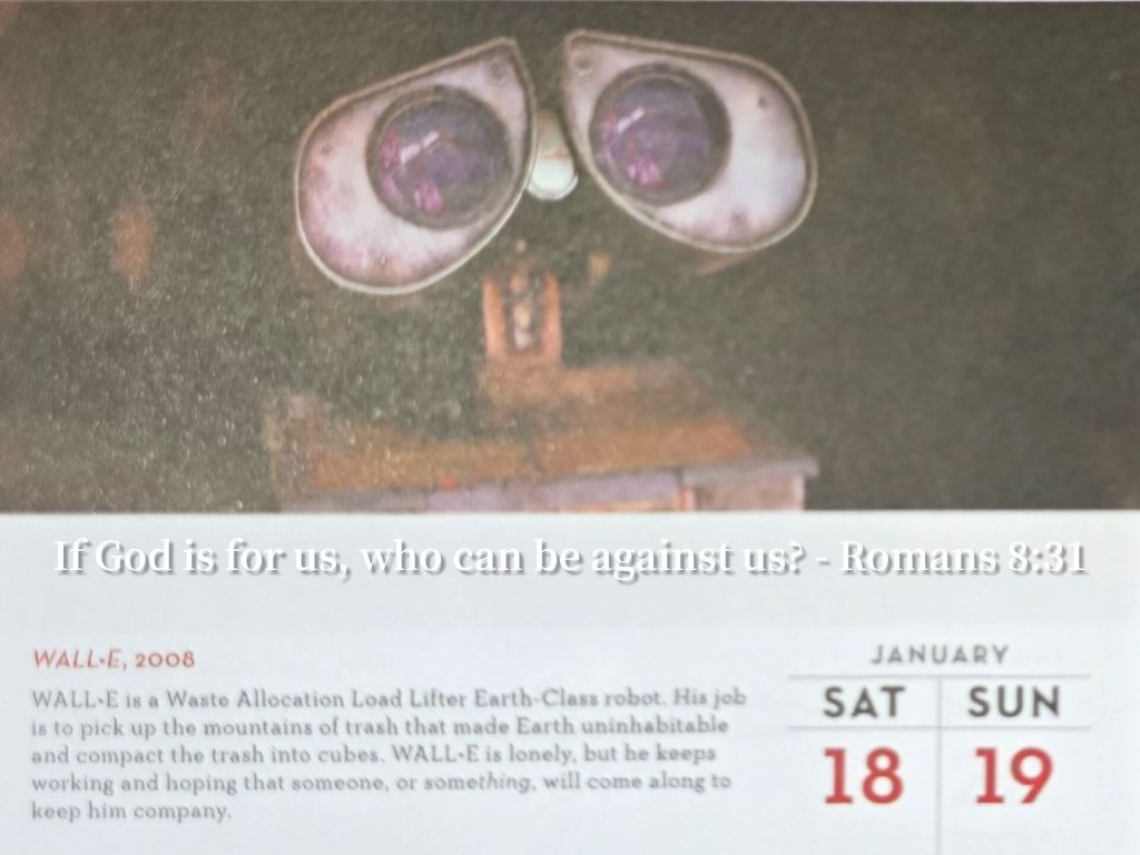《瓦力》中瓦力獨自清理地球垃圾的經歷,作為一種隱喻,來詮釋文中關於信仰與孤獨的觀點。 瓦力儘管孤獨,卻持續工作並保有希望,這與文中「即使孤單也能聽到上帝的聲音」、「Sometimes it takes being lonely to hear God’s voice.」的概念相呼應。 瓦力的堅持不懈,反映了即使在孤獨的處境中,仍然能保有信仰的力量,並持續為目標努力的態度。即使在看似無助或孤單的情況下,只要保有希望與信心,就能如同瓦力般持續前進,最終或許能找到陪伴或獲得盼望。