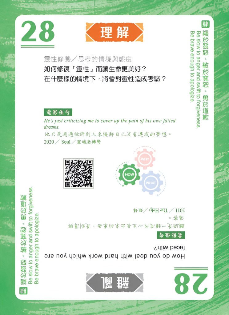 當我們處於「雜亂」的情緒中,例如面對人際衝突、夢想受挫或生活壓力,內心容易焦慮、不安,甚至憤怒。此時,靈性的修復就顯得格外重要。而「緩於發怒」是第一步。 《靈魂急轉彎》中的佳句點出,人們常以批評他人來掩蓋自身失敗的痛苦,這正是靈性受損的表現。 要修復靈性,需要先放下防衛心,承認自己的不足與痛苦。「敏於寬恕」自己和他人的過錯,才能從負面情緒中解脫。最終,「勇於道歉」則展現了成熟和成長,促進人際和諧,並為更美好的生命奠定基礎。 當我們能從「雜亂」中找到平靜,轉而以「理解」的心態看待自己和他人,才能真正修復靈性,體驗生命的充實與美好。