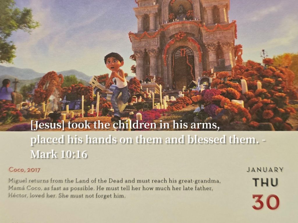 亡靈節(Día de Muertos) 是墨西哥的傳統節日,充滿著對逝去親人的懷念和溫馨的氛圍。孩童通常在節慶中扮演重要的角色,他們的天真爛漫與節日歡樂的氣氛相輔相成。這與文本中提倡的「童心」概念產生了聯繫:如同亡靈節的氛圍,純真的童心可以讓人感受到溫暖、愛和連結,超越生死界限。 《可可夜總會》的主題圍繞著家庭、記憶與愛的傳承。米格爾為了追尋家族歷史與自我認同,展開一段亡靈世界的旅程。這與文本中「Be the first to love and give.」的訊息產生共鳴:愛與付出的行動能跨越時間與空間,如同米格爾對家族的愛一樣,綿延不絕。電影中的米格爾一開始為了追求夢想而忽略了家庭,之後才領悟到家庭的重要性。這與文本中「活出單純的生活」的理想相呼應,暗示著回歸童心,就能夠更真誠地去愛和被愛,過著更單純而有意義的人生。