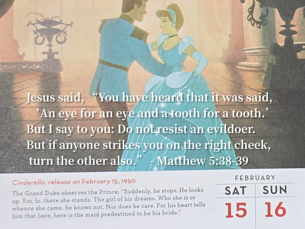 Jesus said, “You have heard that it was said, ‘An eye for an eye and a tooth for a tooth.’ But I say to you: Do not resist an evildoer. But if anyone strikes you on the right cheek, turn the other also.” – Matthew 5:38-39