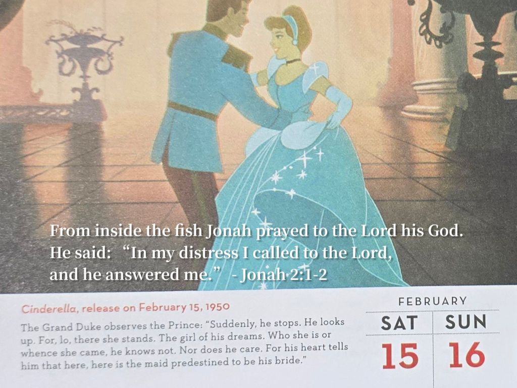 仙度瑞拉的故事與約拿的故事,互相呼應。 她們都經歷過困境和挑戰,但因著對神的信靠,最終都獲得了光明與盼望。 約拿從魚腹中被拯救出來,象徵著神的大能與恩典;仙度瑞拉的故事也代表著無論境遇如何,只要我們對神保持信心,神總會引領我們走出困境,走向光明。