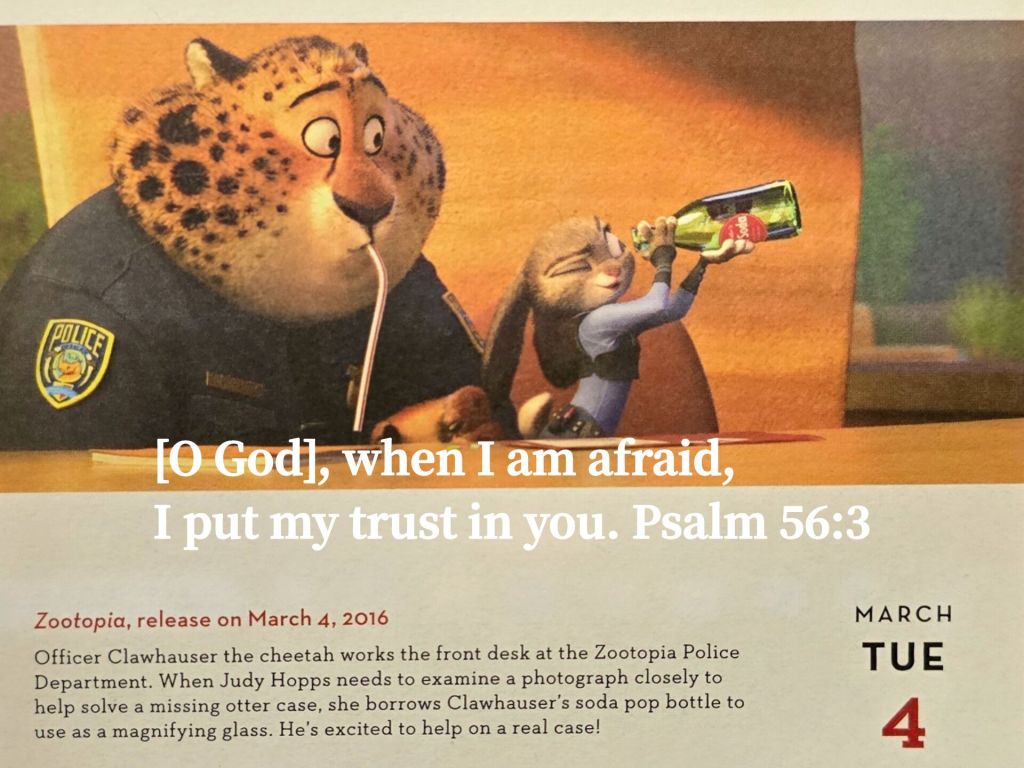 [O God], when I am afraid, I put my trust in you. Psalm 56:3