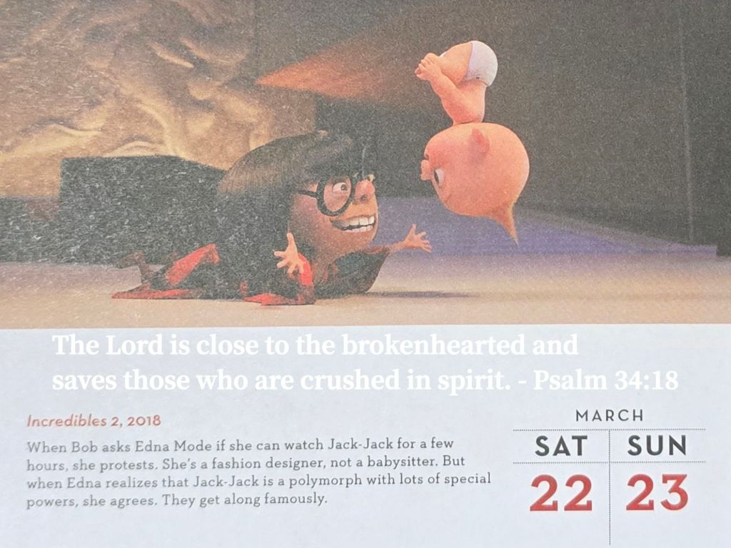 《超人特攻隊2》中,服裝設計師伊芙娜(Edna)起初不願意照顧超能寶寶小傑(Jack-Jack),但後來她發現小傑擁有許多神奇的能力,便決定接納他,兩人甚至相處得非常愉快。 這或許暗示著,我們或許會拒絕靠近那些受傷的人,但若我們願意放下成見,接納他們,就能在他們身上看到上帝的愛與奇妙。