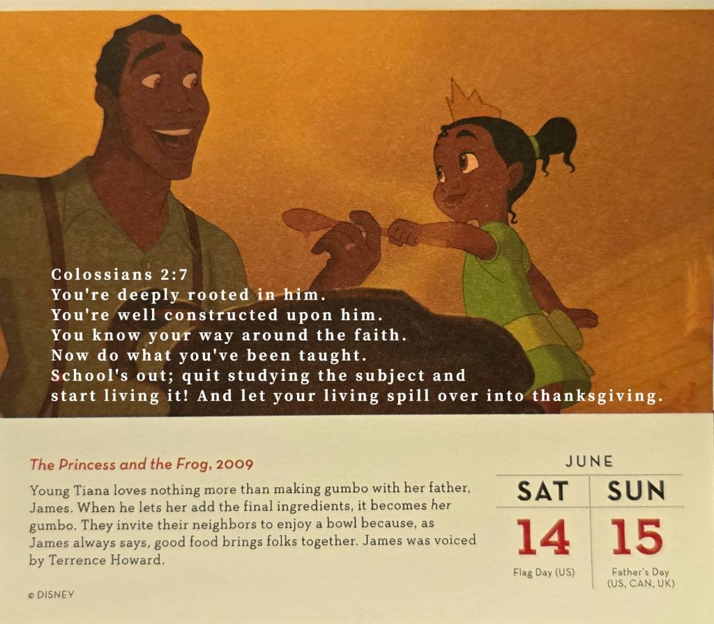 迪士尼的《公主與青蛙》中,蒂安娜對於製作美味的甘蔗湯充滿熱情,這不僅是她的夢想,也是她與父親之間的聯繫。她的故事提醒我們,當我們將信仰與生活結合時,能夠創造出美好的成果,並影響周圍的人。
