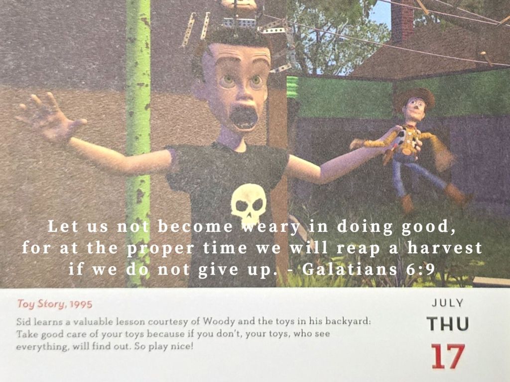 迪士尼的《玩具總動員》中,角色西德學到了珍惜玩具的重要性,這讓我們明白,善待他人和珍惜身邊的事物是多麼重要。每一個小小的善行都能帶來信心、喜悅和希望,並為他人提供便利。正如我們在生活中播下的每一粒種子,最終都會在合適的時候結出豐碩的果實。
