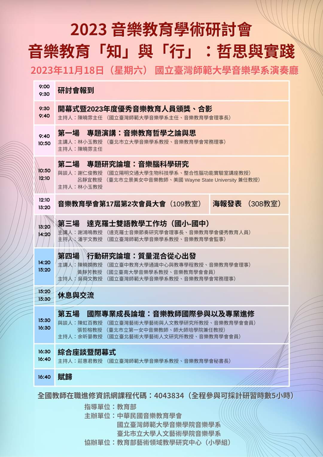 音樂、生命與社會情緒學習之知與行初探 中華民國音樂教育學會2023學術研討會 音樂教育「知」與「行」:哲思與實繼續閱讀 “音樂、生命與社會情緒學習之知與行初探(中華民國音樂教育學會2023學術研討會審查通過之海報發表)"