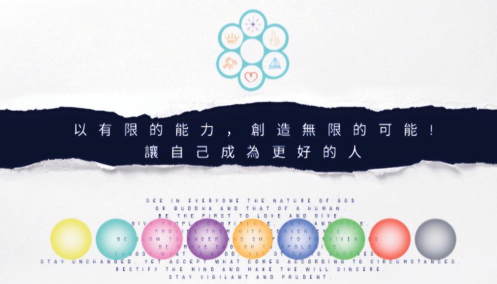 | 終極關懷 | 13.榮譽/屈辱 1. 為什麼我們生命需要有「愛」? 2. 理性與感性的脈絡,該如何行動才能符合邏輯而落實愛的生命? 3. Why do you think your existence is so special? | 14.和藹/凶暴 1. 為什麼付出的『愛』能創造出幸福? 2. 愛與幸福的關係,是否有不符合邏輯之處? 3. Do you have a habit that you can’t fix? | 15.充沛/陰沉 1. 如何能使「愛」的生命更幸福? 2. 在給予的過程中,要如何避免產生邏輯的矛盾? 3. How do you think the happiest way to leave this world? | 16.喜歡/無視 1. 如何修復彼此的關係,才是「愛」的表現? 2. 什麼才是愛的本質條件? 3. How do you feel when you feel you or how visit a new place? | 17.進取/絕望 1. 什麼樣的態度,能在無法改變環境下而堅持「愛」的信念? 2. 邏輯很難在主觀的意識下做出正確的判斷,那麼我們該如何跳脫此矛盾? 3. What was your most grateful thing today? | 18.謹慎/放任 1.什麼樣的作為,能使生命活出「愛的意義」? 2.具有意義的生命,需要符合什麼樣的邏輯推論? 3.How can we reconcile the seemingly conflicting concepts of “prudence" and “letting go" in our pursuit of a meaningful life? |
